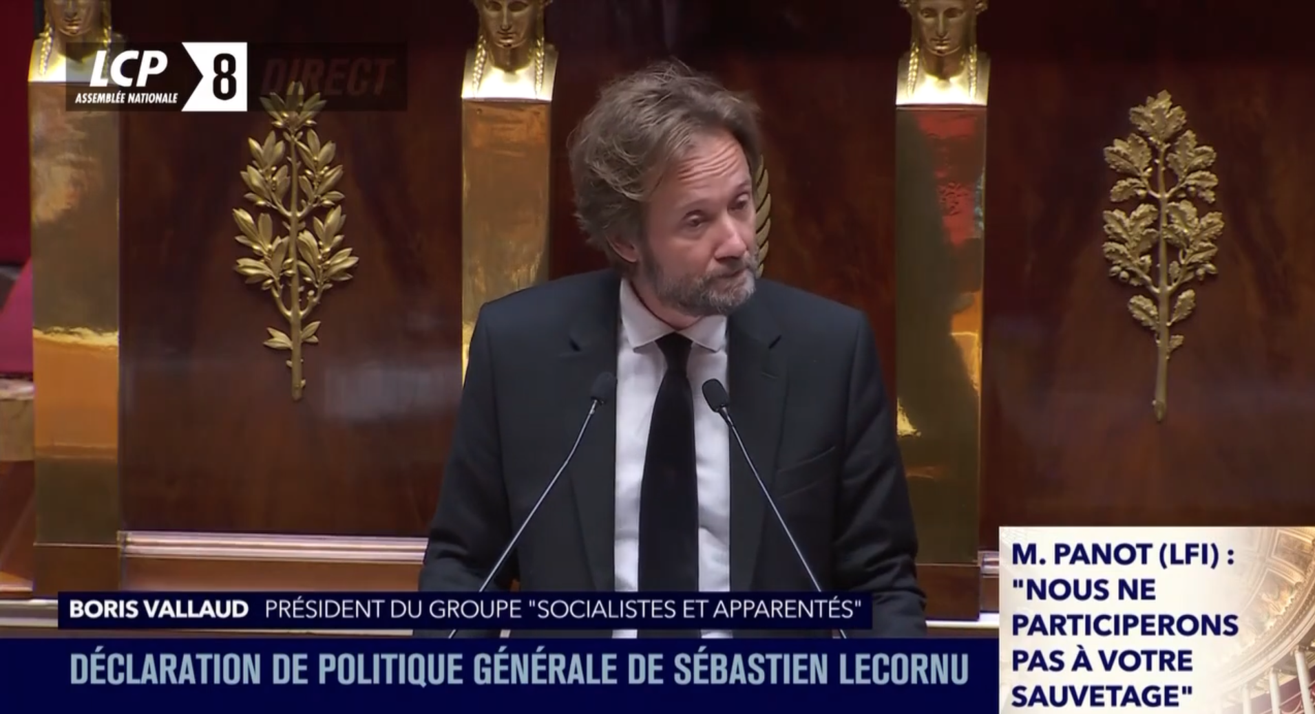 Le Président du groupe Socialistes et apparentés, Boris Vallaud, a pris la parole au nom des socialistes pour répondre à la déclaration de politique générale du Premier ministre.