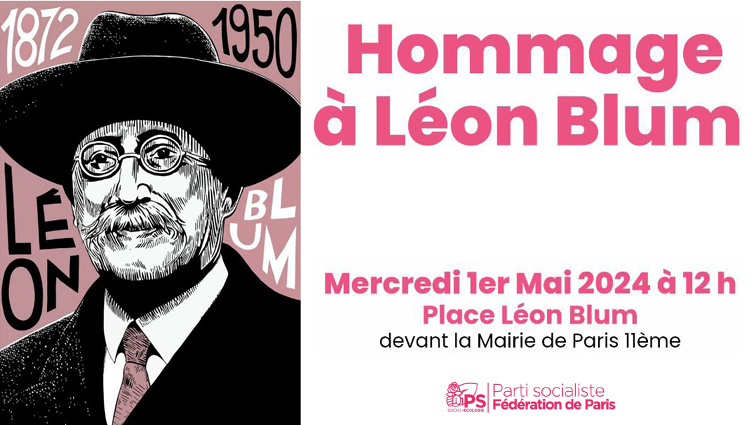🌹 Les socialistes de Paris rendront hommage ce 1er MAI à 12 heures —comme tous les ans autour de la statue de Léon Blum, à proximité immédiate de la mairie du XIe arrdt— à celui qui dirigea le gouvernement de Front populaire en 1936.