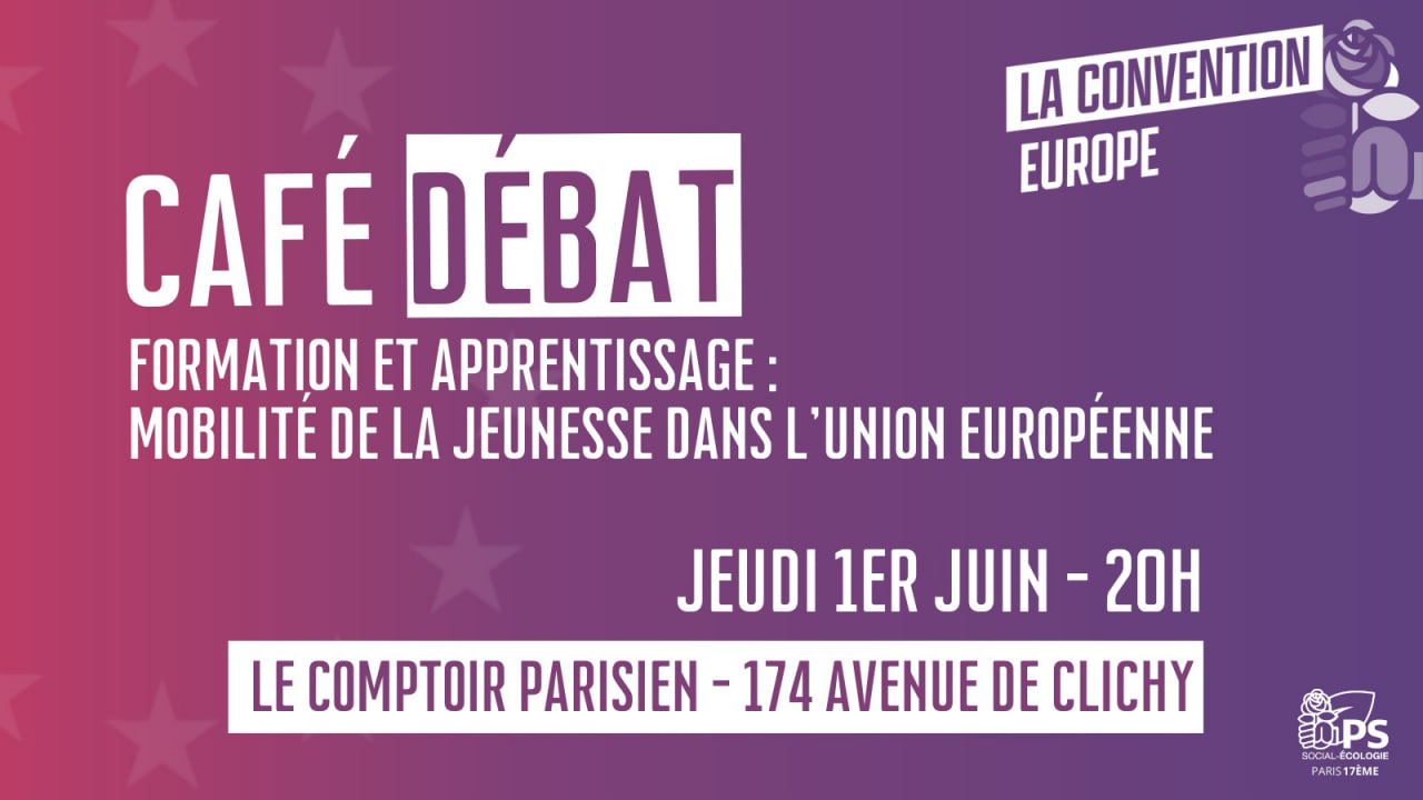 En ce début juin, la section PS du 17e s'empare du sujet de la formation professionnelle et vous invite à un débat qui s'inscrit dans le cadre de la Convention Europe du PS sur la mobilité des jeunes dans l'UE avec des spécialistes du sujet :