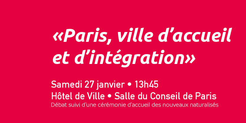 Le samedi 27 janvier 2024 à partir de 13 heures 45 dans les salons de l’Hôtel de Ville se tiendra un débat sur le thème "Paris, ville d'accueil et d'intégration"